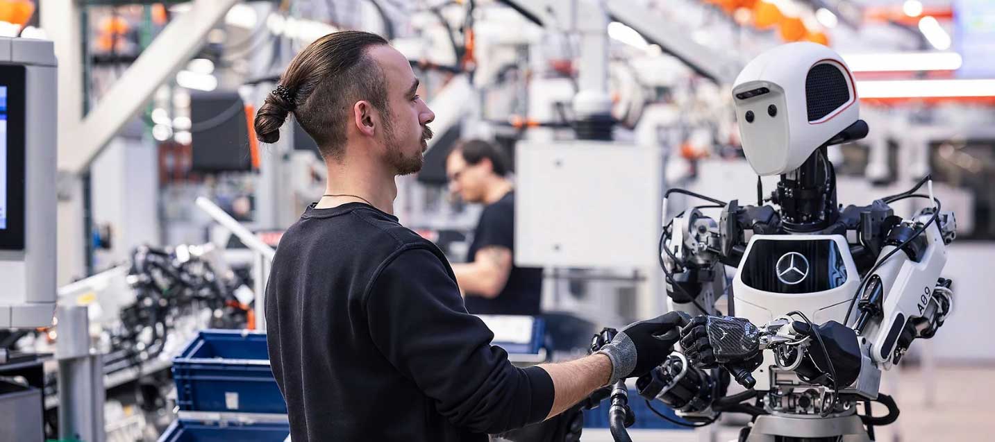 مرسدس بنز در حال آزمایش ادغام ربات های انسان نما در تولید با تمرکز بر وظایف تکراری در داخل لجستیک است. آنها با Apptronik و Google DeepMind برای پیشرفت روبات های انسان نما همکاری کرده اند.